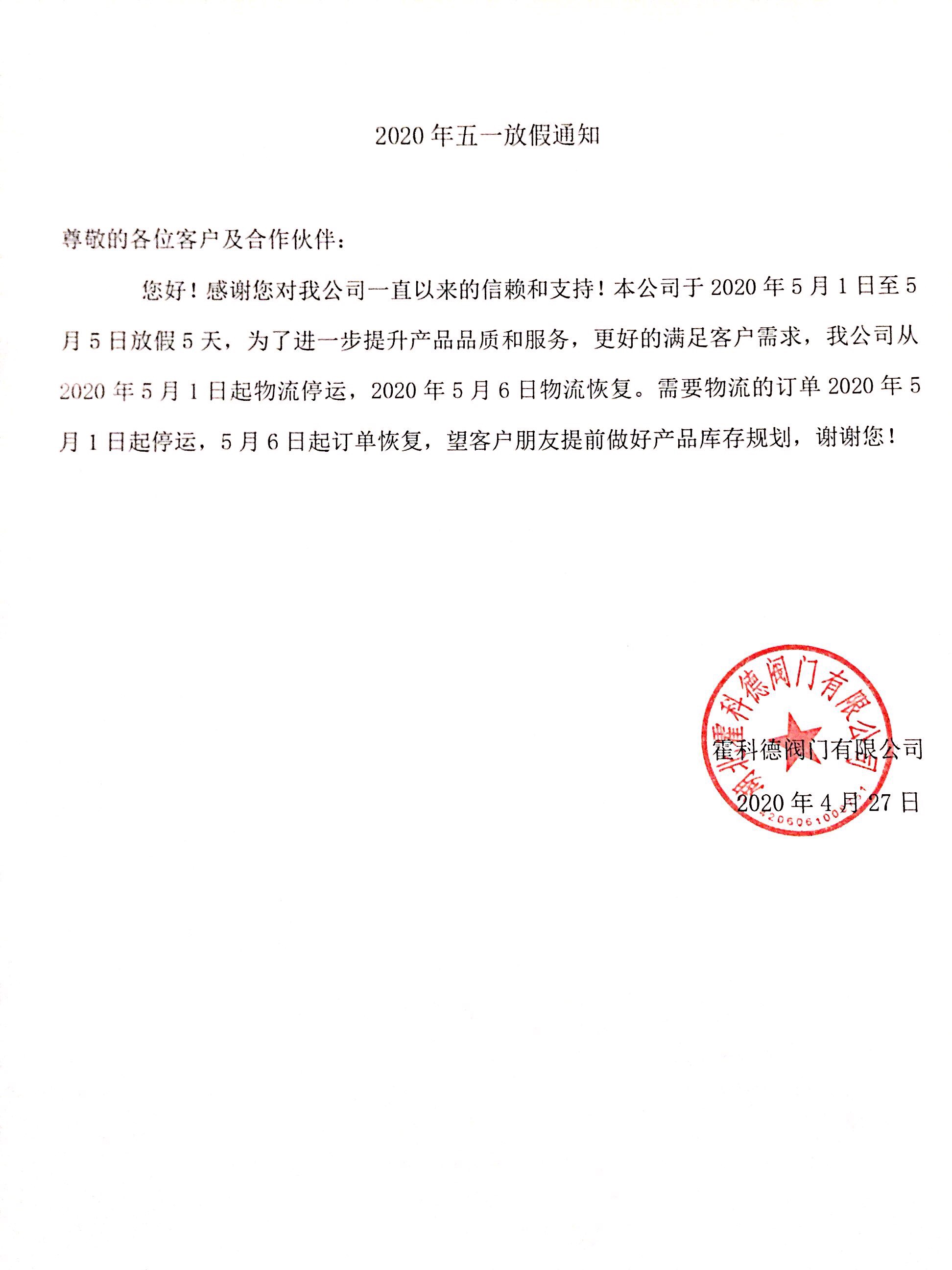 五一放假通知